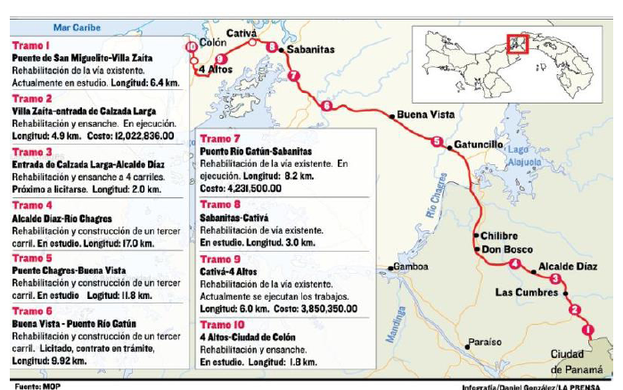 Este estudio se realizó en la carretera Boyd-Roosevelt, entre el Tramo 5 (Puente sobre el Río Chagres- Buena Vista) y el Tramo 9 (Cativa -Cuatro Altos); que corresponde a una distancia de aproximadamente 38.92 Km. (ver Figura, 1).