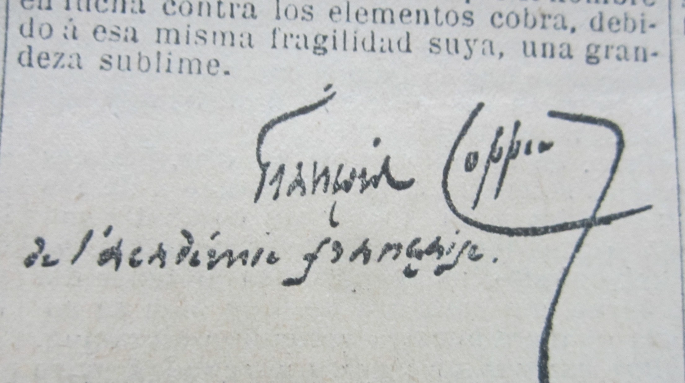 Comencemos por aquellas plumas más conspicuas, las que firmaban su columna "escrita expresamente para..." con regularidad desigual. Colaboradores más que corresponsales en sentido estricto, se trataba de figuras ligadas a la cultura y al beau monde en ciudades estratégicas en el horizonte cultural rioplatense. Larguísima, la lista incluye a Cesare Lombroso, Guglielmo Ferrero, Edmundo De Amicis, Benito Pérez Galdós, François Coppée, Max Nordau, o la baronesa Livet (sobre moda parisina) colaboraban con los grandes diarios porteños sobre temas muy diversos, sin moverse de su lugar de residencia. Sus piezas capitalizaban un conocimiento de los pliegues letrados, artísticos o científicos del mundo europeo (italiano, francés, español), considerados de interés para los lectores rioplatenses, y tamizados por la agenda de cuestiones de actualidad. Como indicaba Navarro Viola, La Nación era el líder indiscutido en este plano, con decenas de nombres prestigiosos, en efecto. [34] Pero a fin de siglo, La Prensa también invertía en el desarrollo de su propio plantel de colaboradores de la cultura. Procurando recuperar terreno, este diario multiplicaba los signos de exclusividad estampando al pie de cada columna un facsímil de la firma manuscrita del periodista-autor (Figura 2) y (Figura 3).