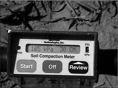 El índice de cono (IC) se determinó con un penetrómetro Scout 900 (Figura 6) con grabación de datos. El cono cumple con las medidas según el estándar S 313 de ASAE Standards (1992). Cada dato representa el promedio de 25 muestras tomadas de cada parcela en el 0 - a rango de profundidad de 450 mm, a intervalos de 25 mm.