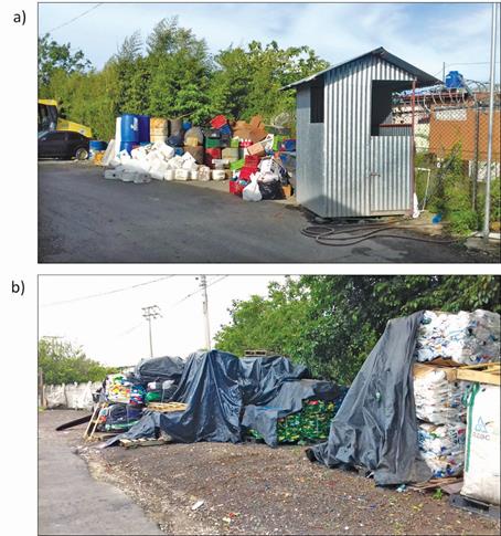 En caso de almacenar material al aire libre se deben tomar consideraciones especiales, como dar prioridad a los materiales con bajo tiempo de rotación y cubrir los residuos con lonas. En un CRRV visitado se observaron residuos almacenados al aire libre sin ninguna protección, afectando además la estética de las instalaciones (figura 5).