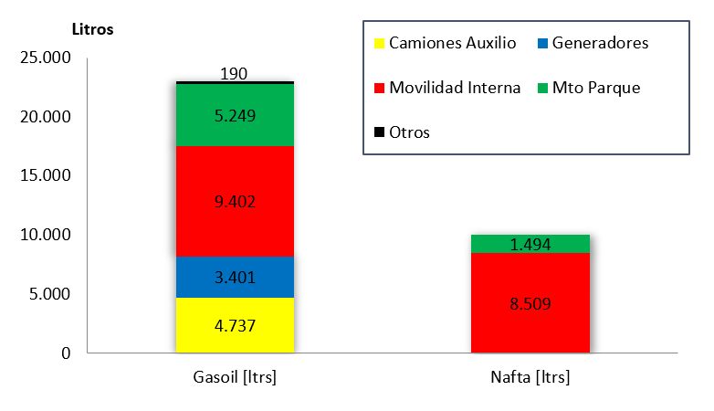 Consumo de combustible año 2019, discriminado por uso y procesada la información disponible, se elaboró la figura 10 correspondientes a los consumos del año 2019, discriminando por sectores.