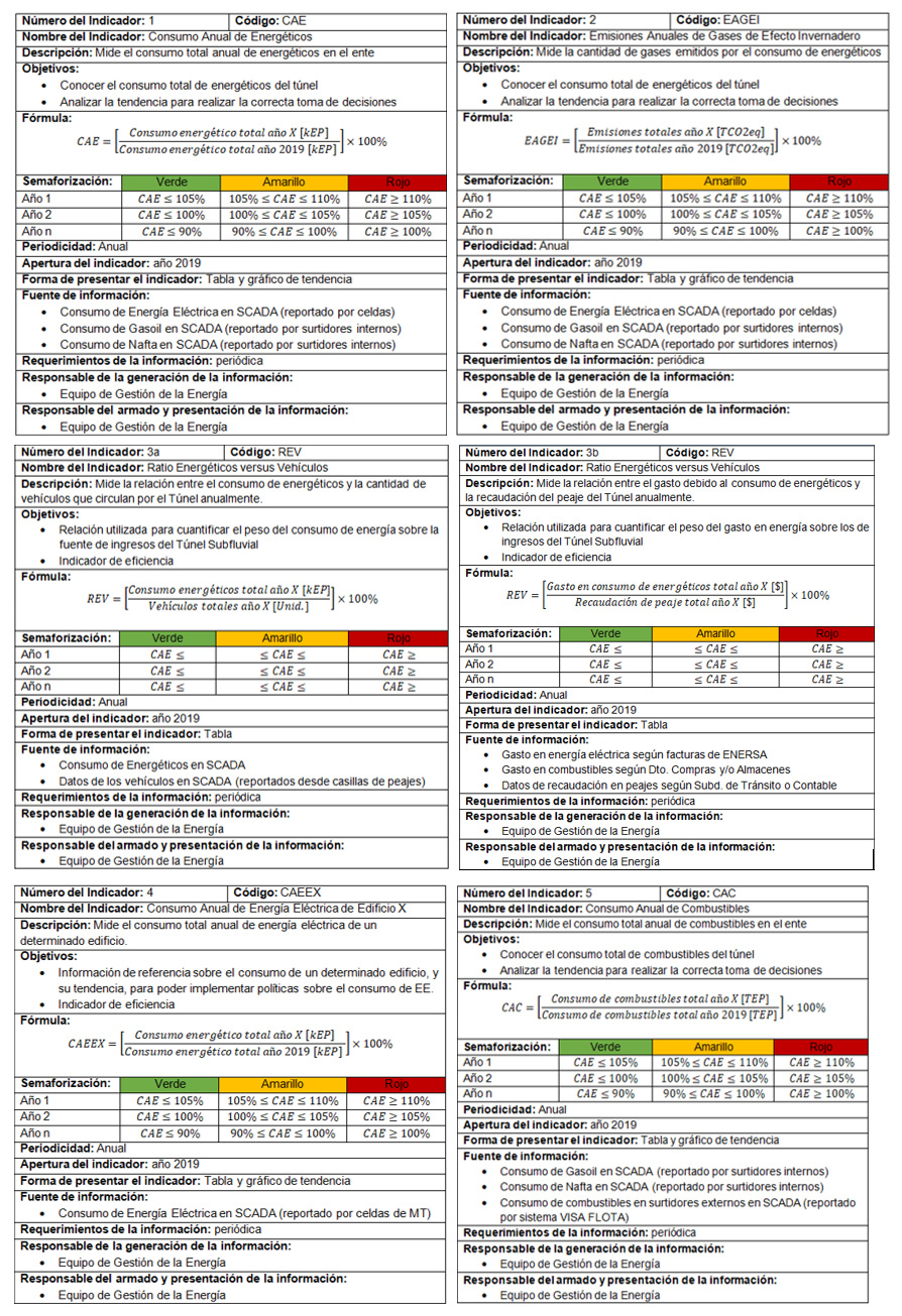 Los indicadores propuestos según figura 12, tendrán dos destinatarios, los directivos del túnel subfluvial, que representarían lo que la norma llama la alta dirección, y el Equipo de Gestión de la Energía (EGE).