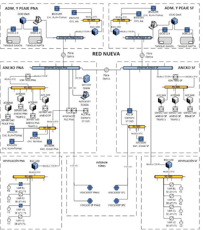 Muchos de los equipos actuales del túnel pertenecen a una gran variedad de marcas, emplean distintos protocolos de comunicación y sobre distintos medios físicos.