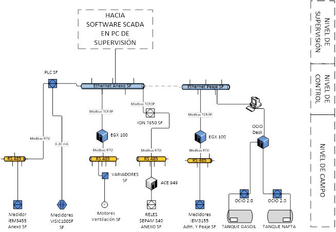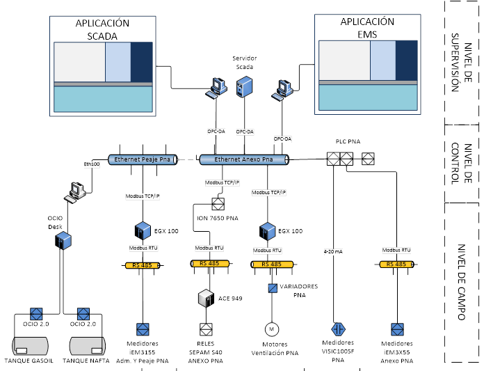 Este tipo de sistemas, SCADAs pero orientados a la supervisión de energía, se tendrán en cuenta ya que se alinean con los requisitos para implementar la IRAM-ISO 50.001. La configuración de este dependerá de cómo se interconecten los equipos que lo integren, tomando en cuenta las opciones que ofrece la industria de la automatización y las telecomunicaciones.