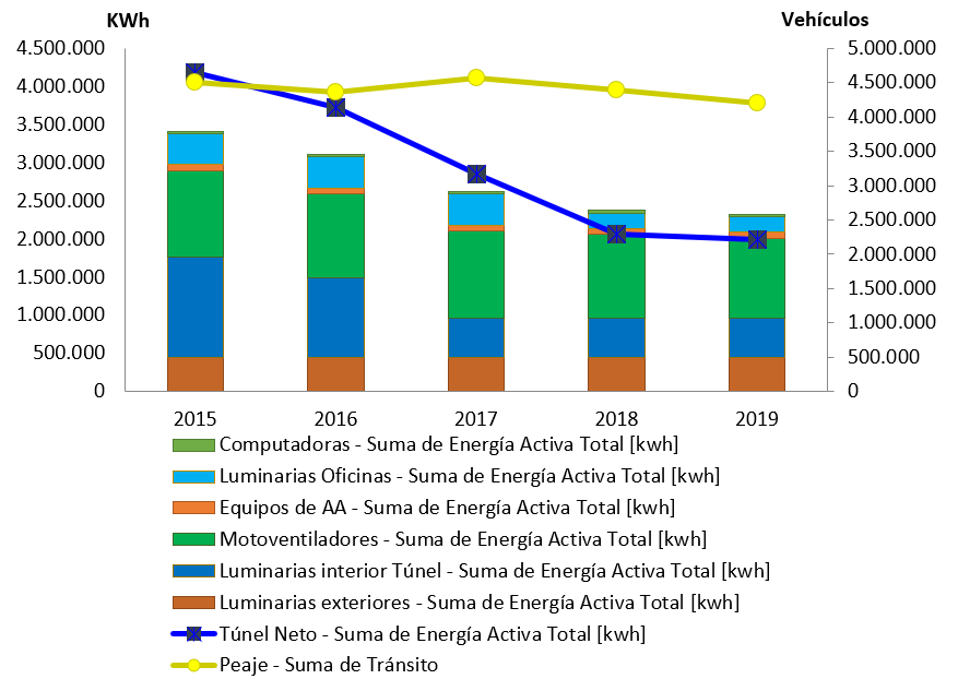 Se recopiló, procesó y analizó la información disponible sobre el consumo energético, pudiendo conocer el estado actual del túnel.