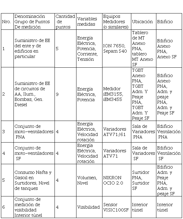 The study proposes the design of an energy measurement and monitoring system, based on the IRAM-ISO50001 standard, seeking to increase energy efficiency in the “Uranga-Begnis” subfluvial tunnel. To this end, an analysis of current energy consumption was carried out, defining guidelines for an Energy Management System: indicators, base line of consumption and an Energy Management Team. Next, equipment and instruments were selected for the measurement of energy variables at strategic points and a new communications architecture of greater availability and scope was designed. Finally, a technical report was prepared for management to promote its implementation. This study allowed to know the current distribution of the energy consumption matrix, identifying critical sectors. The proposed measurement system that provides information to the indicators developed will help the Management Team to define, implement and control energy efficiency policies.