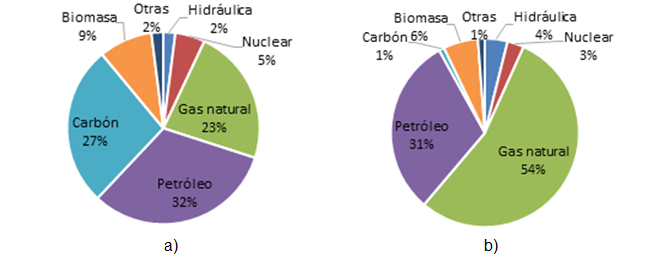 Argentina, de manera similar al resto del mundo, utiliza un alto porcentaje de energía producida en base a hidrocarburos, como lo son el petróleo y el gas natural, siendo más del 80% del total de la oferta interna del país (Figura 1-b). A diferencia de lo que ocurre a nivel global, en el país la producción de energía en base al carbón mineral es poco significativa, mientras que la energía producida a partir de gas natural tiene un gran desarrollo (54%), la cual se utiliza en hogares, industrias y para generación eléctrica.