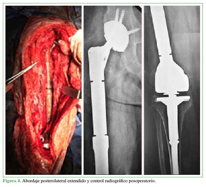 Abordaje posterolateral extendido y control radiográfico posoperatorio.