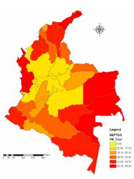En el año 2005, Pérez realizó un trabajo auspiciado por el Banco de la República de Colombia, con el objetivo de resaltar el papel de las variables geográficas en la explicación de la pobreza por departamentos y municipios en el país. Durante el desarrollo de esa investigación se identificó que se habían realizado algunos estudios en esta misma línea: en ellos se abordaban aspectos diversos bajo las formas de análisis descriptivos y de distribución geográfica de la pobreza, lo que no hacía posible componer análisis concluyentes en términos de una interacción entre las variables (Pérez, 2005).