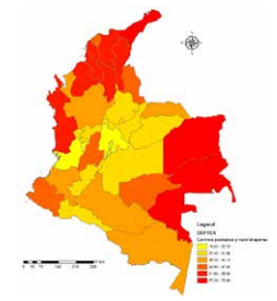 En la misma línea, al comparar los datos en relación con las cabeceras municipales y los centros poblados y rurales en la pobreza multidimensional encontramos que, si bien el promedio nacional es de 16,9 % de la población, en términos estadísticos se presenta una diferencia significativa entre los dos tipos de zonas: 13,8 % en las cabeceras frente a 39,9 % en los centros poblados y rurales (DANE, 2019b). Esta distinción es aún más importante si se tiene en cuenta que, de acuerdo con el PNUD, solo el 19,1 % de los municipios de Colombia son urbanos, el 27,2 % son rurales y el 53,8 %, mixtos. Para establecer la ruralidad como índice se la toma como un continuo, teniendo en cuenta la densidad poblacional y la distancia a los centros poblados (Parra-Peña et al., 2013).