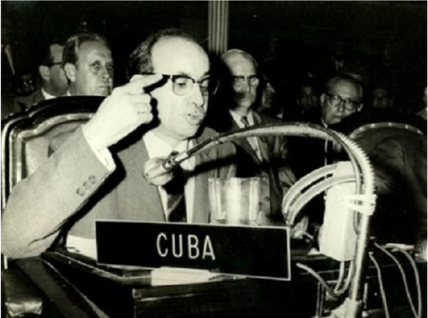 Canciller Raúl Roa García al frente de la delegación cubana ante la VII Reunión de Consulta de los Cancilleres de América, celebrada del 22 al 29 agosto de 1960.