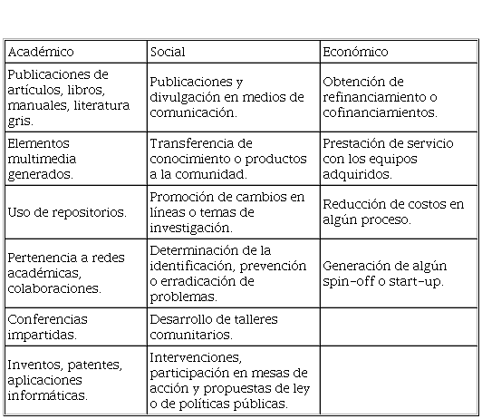 Palabras clave: investigación, impacto, indicadores.