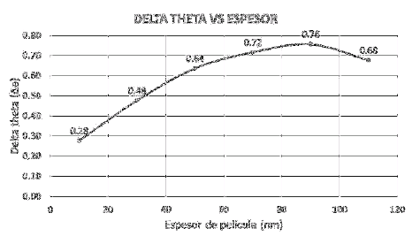 Una vez obtenida la gráfica de delta theta versus el espesor de la película, se pudo observar que se tiene un máximo de