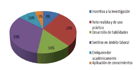 Ellos llegaron a las siguientes conclusiones: (a) hace al aprendiz sentirse en el ámbito laboral, (b) implica un reto