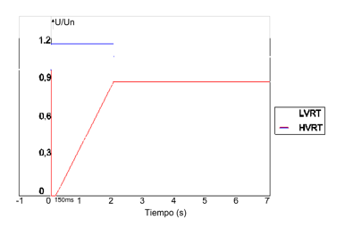 Para garantizar que las Centrales no se disparen o se desconecten durante e inmediatamente después de ocurrida una falla en el SIN, por altos o bajos voltajes, se deben especificar las características para el Bajo Voltaje LVRT (Low Voltaje Ride-Through) y para el Alto Voltaje HVRT (High Voltaje Ride-Through).