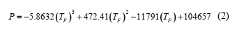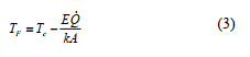Donde P representa la potencia en Wh y TF la temperatura interior del recinto en °C. En la ecuación (3) no es más que una variación de la ley de Fourier, despejada para el valor de TF.