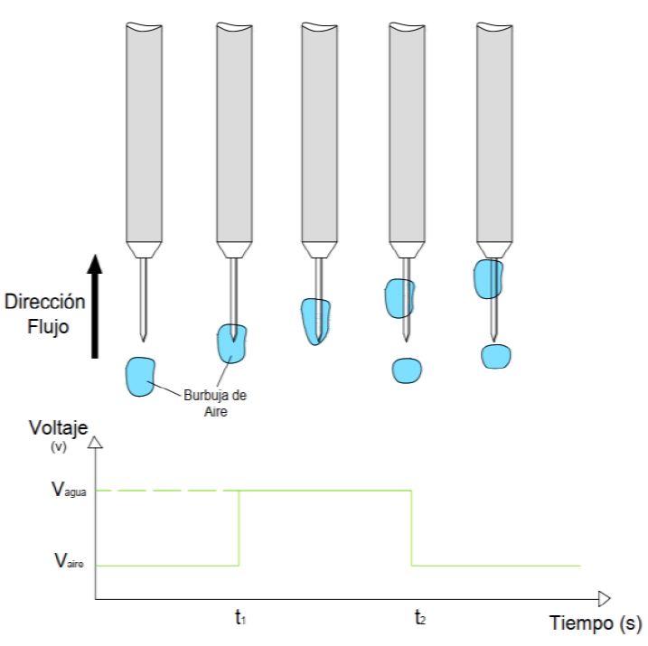 La señal analógica es transformada en una señal cuadrada utilizando el criterio de umbral simple de corte al 50% del voltaje total (Toombes, 2002). Las propiedades bifásicas agua-aire fueron obtenidas mediante el procesamiento de señales con un programa escrito en MATLAB R2017a.