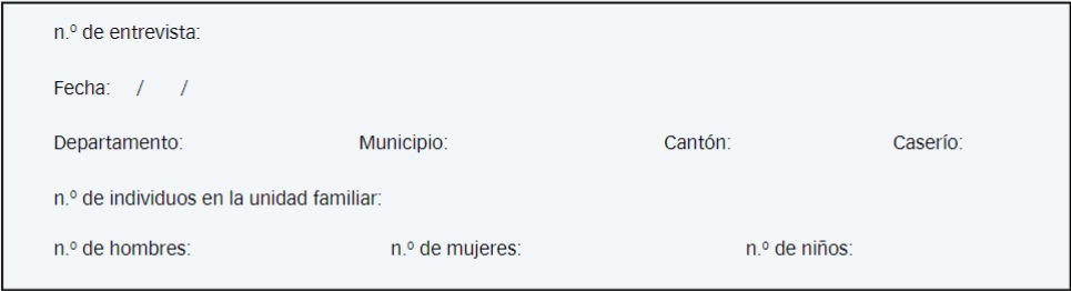 Así que, a falta de estadísticas oficiales a escala de caserío o cantón, se ha planteado un cuestionario (ver Anexo II) en el que se pretende obtener información de carácter cualitativo sobre los siguientes temas: