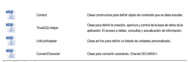 La información se compone de unidades, preguntas con sus respectivas respuestas y contenido de estudio. Todo esto conforma las tablas que definen la base de datos Trivia.db.