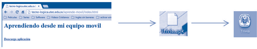 La aplicación puede ser descargada desde el URL: http:// tecno-logica.utec.edu.sv/aprende-movil/index.html.