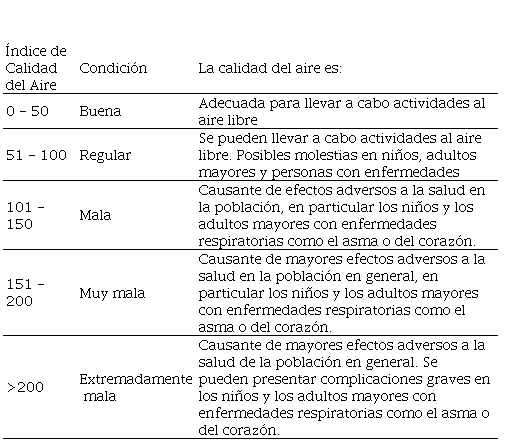 Con base en los Lineamientos para la obtención y comunicación del Índice de Calidad del Aire y Riesgos a la Salud [12], los niveles de los contaminantes que se deben medir y comunicar a la población correspondientes son:
