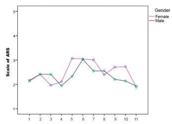 Since normality in the distribution was not achieved, the nonparametric test of Kruskal Wallis was performed to analyze the difference between the categories. Significant differences were found in the main uses of social media and addictive behavior (?2 [10] = 19.57, p <.05). A generalized linear model was used to analyze the hours of daily use and the variables gender and main uses of social media using the inter-subject effects test (see Figure 1). Significant differences were reported in the corrected model (F [21] = 1.79, p <.05, R2 = .078), reporting a moderate effect size through the Eta square analysis (?2 = .078). Interception was significant (F [1] = 304.37, p <.001, ?2 = .407). There was no significant interaction between the main use factors and gender (F [1] = 0.76, p = .65, ?2 = .017), because the use variable did not have an effect on the daily hours (F [10] = 1.36, p = .198, ?2 = .030). The tendency of women to report more daily hours of use than men was in the activities of sharing and expressing themselves, meeting people, following public figures and work (F [1] = 4.06, p <.05, ?2 = .030).