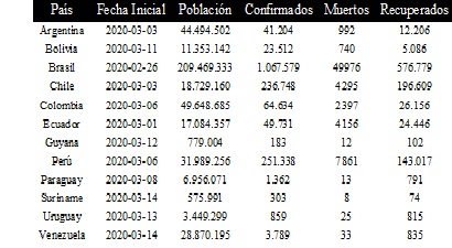 Para obtener datos epidemiológicos de países de Suramérica se usó la librería COVID-19 de Emanuele Guidotti, disponible en: https://covid19datahub.io/ , que provee una base de datos unificada de los casos de la COVID-19 a nivel mundial (Guidotti& Ardia, 2020).