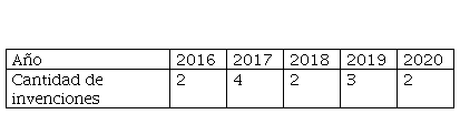 Se realizó un análisis de la cantidad de invenciones presentadas desde el 2016 hasta Mayo de 2020 y el tipo de producto que protegen.