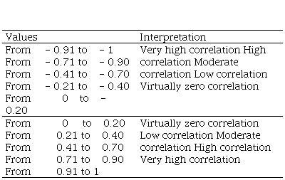 According to Bisquerra (2009), he indicated the following scale of values and interpretations of Spearman's Rho, and also refers that Spearman's Rho coefficient can vary from -1.00 to + 1.00, giving the following scheme.