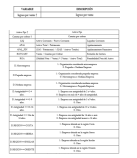 estados financieros. Otro de los aportes de este estudio es su carácter pionero en el análisis de las MIPYMES a través de la estimación de modelos de variable dependiente binaria como el Probit, Logit y Cloglog.
