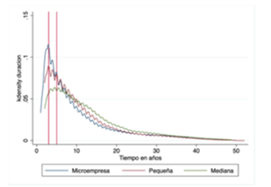 De forma específica, se puede señalar que, de acuerdo con los resultados obtenidos y esperados del modelo, el tamaño presenta una relación no significativa con la supervivencia empresarial. Además, se corrobora que el aumento de la antigüedad en las empresas disminuye las posibilidades de sobrevivir en contraste con empresas que han sido creadas recientemente.