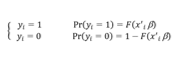 (3)Al ser 𝑦𝑖 una variable binaria las igualdades (2) y (3) son totalmente equivalentes. Generalmente la formulación de los modelos para variables binarias emplea la estructura de la ecuación (3); por lo que conlleva a inferir que la variable dependiente sigue una distribución binomial de tal forma que: