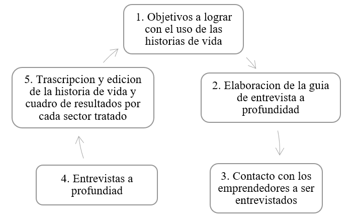 Para la construcción de las historias de vida de los emprendedores entrevistados se toma en cuenta el siguiente proceso como se observa en el gráfico N° 1.