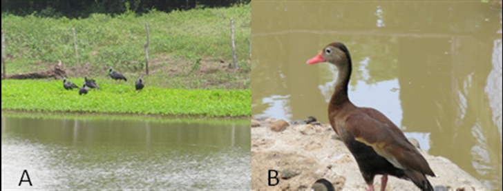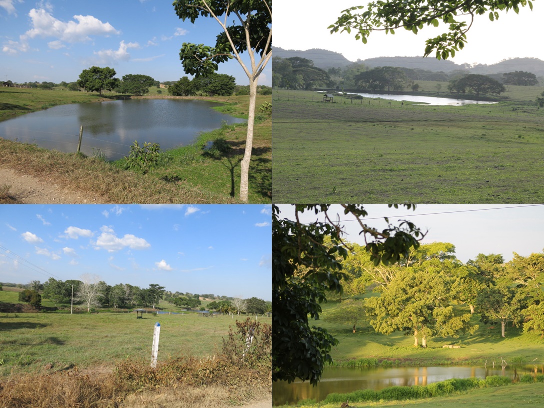 DECLERK et al. (2006) demuestran que existe una relación positiva entre el número de jagüeyes y la biodiversidad de un área dada; las áreas acuáticas restringidas como los jagüeyes juegan un importante papel en la conservación, contribuyen significativamente al mantenimiento y conservación de la biodiversidad regional, en especial cuando poseen como habitantes especies raras, endémicas o únicas, por esta razón la creación de nuevas unidades viene siendo usada como estrategia ampliamente practicada en muchos países. CHARÁ et al. (2008) indican que permiten, en efecto, el establecimiento y conservación de especies vegetales y organismos animales diversos, proveen alimento y refugio, tanto para seres vivos propios del agua como de aquellos que se asocian al sistema por las facilidades ofrecidas. Para la región Caribe en especial para el departamento de Sucre se establece que los jagüeyes son de gran importancia ambiental, actúan como hábitat o refugio de muchas especies locales, por ejemplo de avifauna local y migratoria (DE LA OSSA et al., 2012), Crocodílideos (DE LA OSSA y DE LA OSSA-LACAYO, 2013; DE LA OSSA-LACAYO, 2014) y quelonios (DE LA OSSA et al., 2016 en prep.), entre otros taxones (BOTERO et al., 2009) (Figura 3).