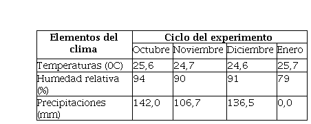 Comportamiento de las variables del clima durante el período experimental