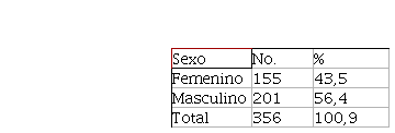 El sexo que predominó fue el masculino con el 56,4 % de los casos, este comportamiento es similar a los del país, aunque en los últimos días ha habido un predominio del sexo femenino en los confirmados (Tabla 1).