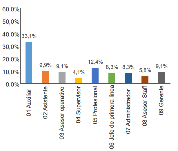 Fuente. Elaboración propiaSon los gerentes lo que mayor número de personal tiene a cargo junto con los jefes de primera línea y los supervisores, sin embargo, un jefe de primera línea no presenta un salario igual de alto al gerente, esto quiere decir que no por ganar igual salario son iguales las responsabilidades o el personal a cargo, lo que justifica en relación con los salarios según (Marx, 1867), por ejemplo, lo que el patrono le paga al obrero por su actividad o servicio, no es realmente el valor del trabajo, sino el valor de su fuerza de trabajo.