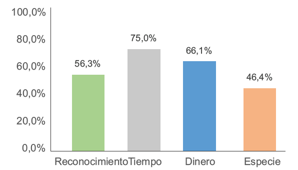 En cuanto a retribuciones económicas, algunas empresas suben los sueldos para que sus empleados no pierdan la capacidad adquisitiva, para reconocer un buen año de labores o para motivarlos en sus trabajos. Los incentivos en tiempo son los que con mayor frecuencia utilizan estos establecimientos, seguido de dinero y en reconocimientos y especie; esto indica que los establecimientos ven en el tiempo, ya sean de horas de trabajo o libre, un factor importante para motivar a sus colaboradores.