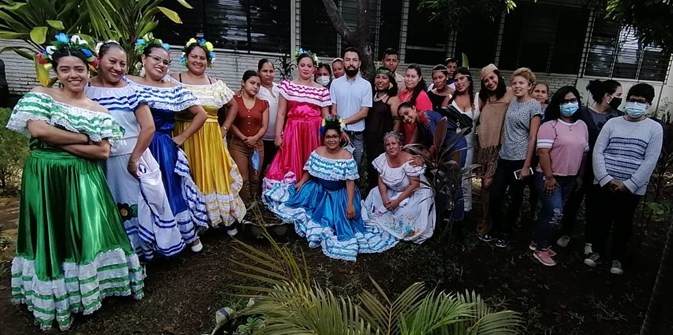Sin embargo, en el año 2020 se realizó de manera dife- rente, debido al contexto de la pandemia de la COVID – 19, pues se hizo en un espacio abierto, en el pasillo del pabellón 42, Departamento de Español. Cabe mencionar que la activi- dad fue realizada por todos los estudiantes de V año de Len- gua y Literatura Hispánicas en el marco de la asignatura Espa- ñol de Nicaragua, la cual tiene una unidad dedicada al estudio de las lenguas de Nicaragua.