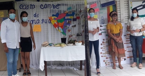 Cada grupo tenía un estand y un mural en el que mostraban y explicaban aspectos culturales, lin- güísticos e históricos de los grupos en estudio; para ello, hicieron uso de diferentes recursos para realizar las exposiciones: tecnológicos, papelógra- fos, comidas y bebidas tradicionales, pinturas, música, bailes, poesía, trajes típicos y herramien- tas representativas de cada etnia. Por ejemplo, quienes expusieron acerca de los nahuas, exhibie- ron productos alimenticios a base de maíz, tales como la tortilla, la rosquilla, el nacatamal, el tamal