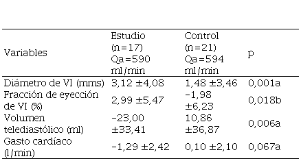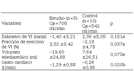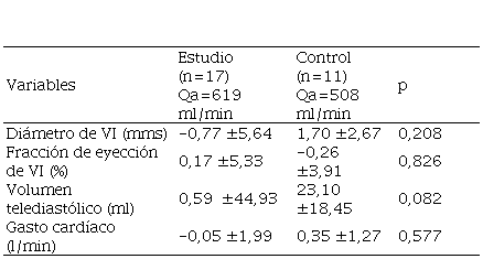-Ecocardiográficas: diámetro de VI, fracción de eyección de VI, volumen telediastólico y gasto cardíaco.