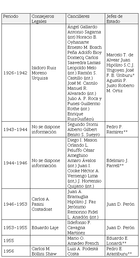 5. EL ROL DE LA CONSEJERÍA LEGAL EN LA FORMACIÓN DE LA POLÍTICA EXTERIOR ARGENTINA. FUNCIONARIOS CLAVES