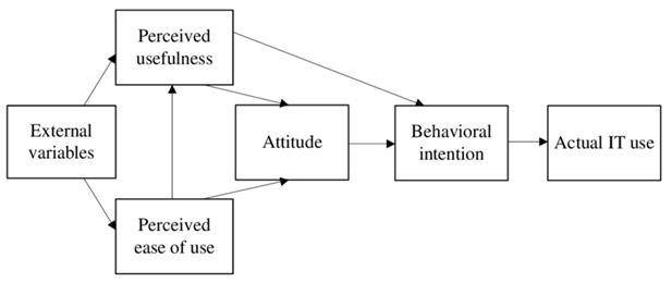 El modelo TAM propuesto por Davis (1985) examina el proceso de adopción de la tecnología a través de las percepciones de los usuarios finales en función de su utilidad y la facilidad de uso. El TAM considera variables como la utilidad percibida y la percepción de facilidad de uso. Usando el TAM, Davis (1993) se dio cuenta que la actitud del usuario determina la adopción de una tecnología en particular y el desarrollo de esta actitud se ve contribuida por la percepción de utilidad y la percepción de facilidad de uso. El poder predictivo del TAM es una de sus principales fortalezas.