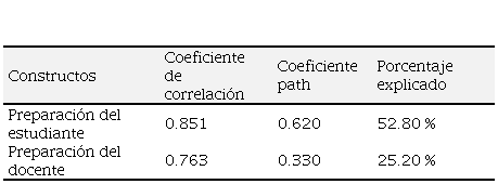 En la Tabla 10, se puede observar que el constructo Control conductual es explicado en 53.40% por la Autonomía de aprendizaje y, en 26.60%, por la Autoeficacia.