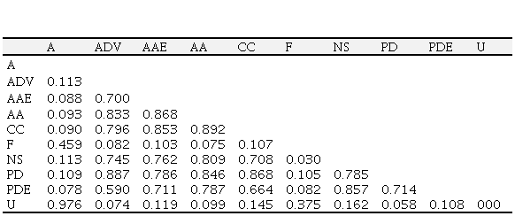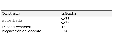Como se observa en las Tabla 2, los indicadores que fueron eliminados debido a que las cargas que presentaban eran menores a 0.4.