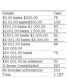 Mediante la encuesta realizada se concluye que el 6,32% de los establecimientos cuentan con un capital de $00,00 a $200,00. De igual forma un 8,42% cuentan con un capital de $201,00 a $500,00. El 6,74% de las empresas cuentan con un capital de $501,00 a $1.000,00. Con un porcentaje del 6,57% las empresas con un capital de $1.001,00 a $1.500,00. Con un capital de $1.501,00 a $2.000,00 con un porcentaje 6,74%. De $2.001,00 a $8.000,00 con un porcentaje de 8,09%. Con un capital desde $8.001,00 a $20.000,00 con un porcentaje de 7,16%. Con un capital desde $20.001,00 a $30.000,00 un porcentaje del 6,32%. Con un capital de $30.001,00 en adelante un porcentaje del 2,53%. Los locales comerciales que sí llevan contabilidad están en el 32,60% y los locales que no brindan información son el 8,51%, esto danto como resultado el 100% de la población.
