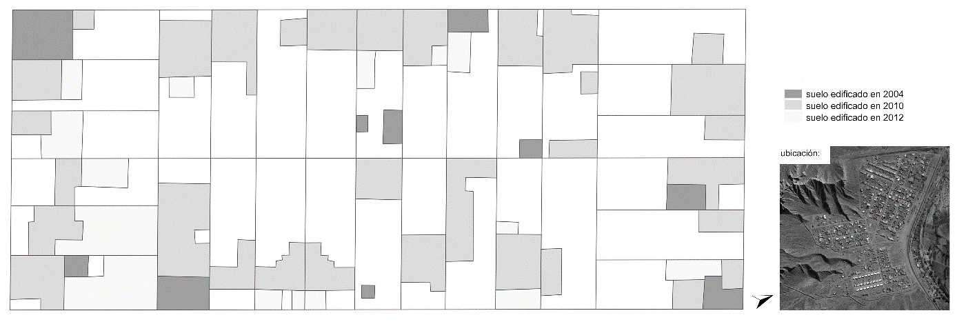 La Figura 8 nos permite ver, por un lado, la consolidación del parcelario de las primeras etapas de autoconstrucción y, por el otro, un nuevo fenómeno de dispersión en la periferia.