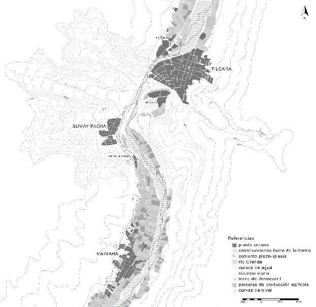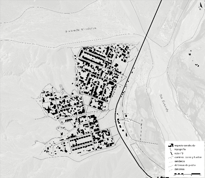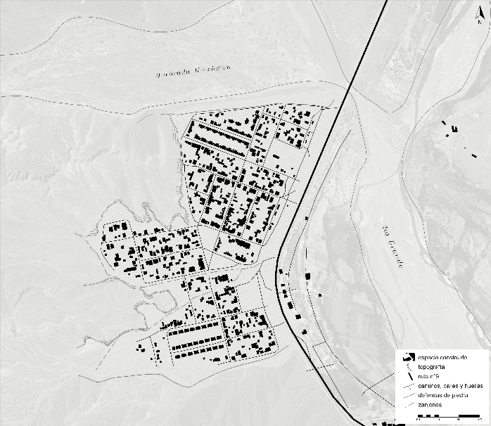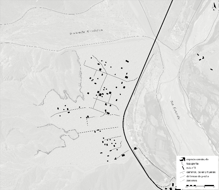 En ese contexto, Sumay Pacha se dividió en dos sectores que tienen como borde las defensas del zanjón central: en el lado norte, el más consolidado, estaban los que se reconocían como habitantes de Tilcara, y en el sur, menos ocupado y con una configuración de manzanas menos clara, aquellos de Maimará.