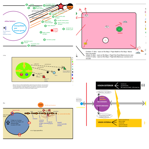 La producción de sociocartocatografías nos demostró metodológicamente que podíamos trabajar en la entrevista las referencias espaciales como lejos; arriba; abajo; cerca; acá nomás; después de tal cosa; dentro; fuera; etc.; en un plano horizontal. Es decir, poniendo en producción conjunta entre entrevistado y entrevistador un plano común que ponga en diálogo las diferentes consistencias sobre las cosas. Así, la desigual experiencia ante las cosas, lo otro y las magnitudes, se torna, mediante el sociocartograma, como una tercera cosa tangible que a su vez es un texto coproducido.