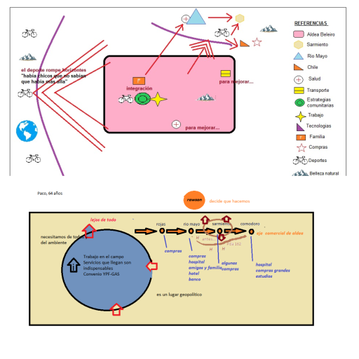 Esto puede verse en dos coremas de ejemplo que derivan de las entrevistas con sociocartogramas (ver coremas).